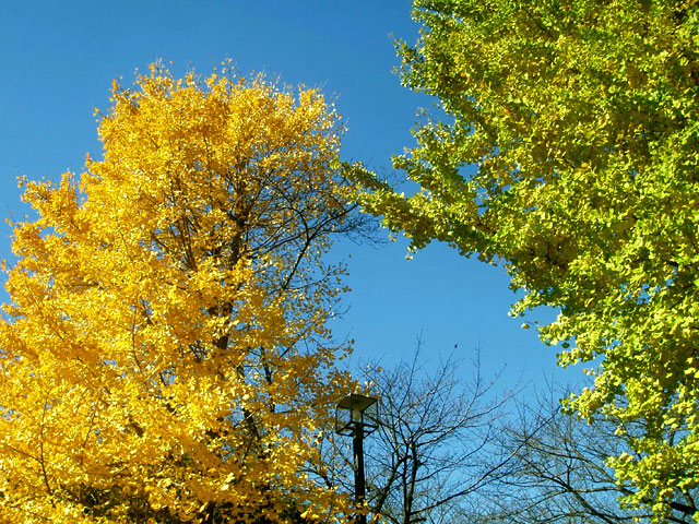 日当たり加減なのか、緑色のイチョウもあるので面白い。